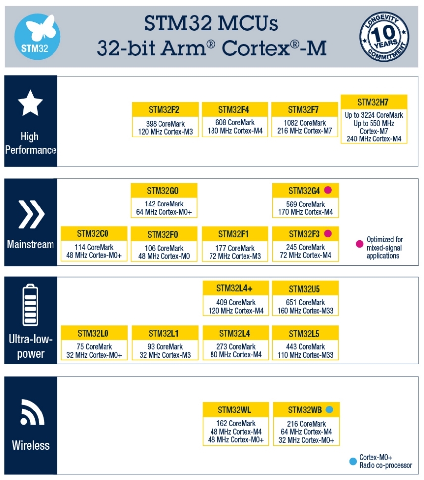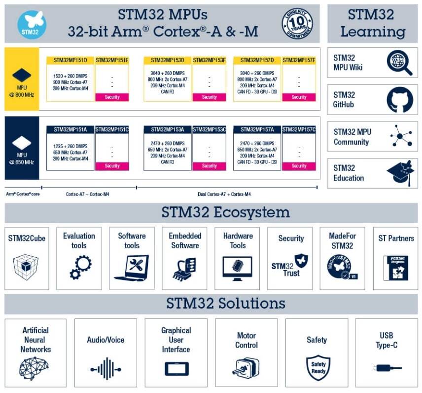 많은 제품군으로 가지고 있는 STM32는 그만큼이나 원하는 Feature를 가진 제품을 찾기가 쉽지 않습니다. STM32 제품군은 크게 MCU와 MPU로 나뉩니다.