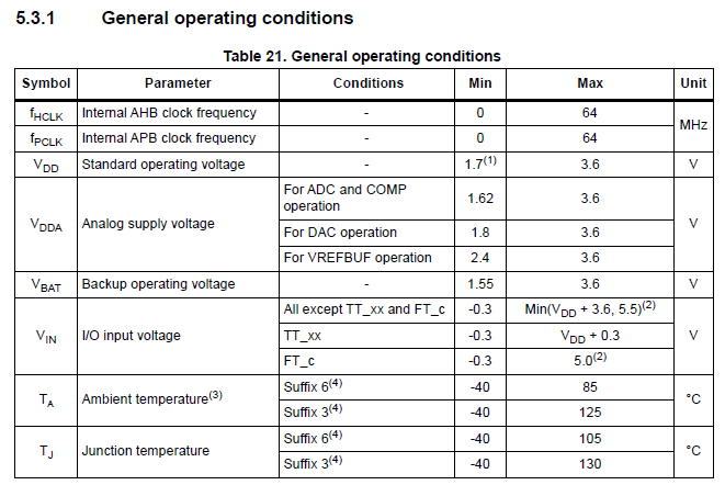 STM32G071 시리즈 General operating conditions