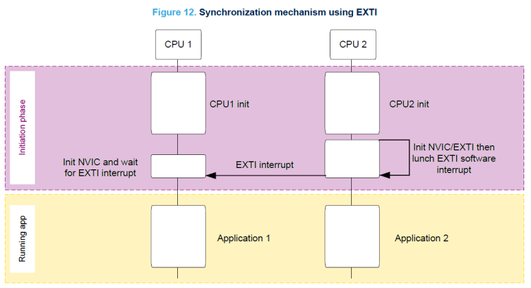 이 섹션에서는 EXTI를 사용하여 CPU 간의 이벤트 전송을 구현하는 방법을 설명합니다.