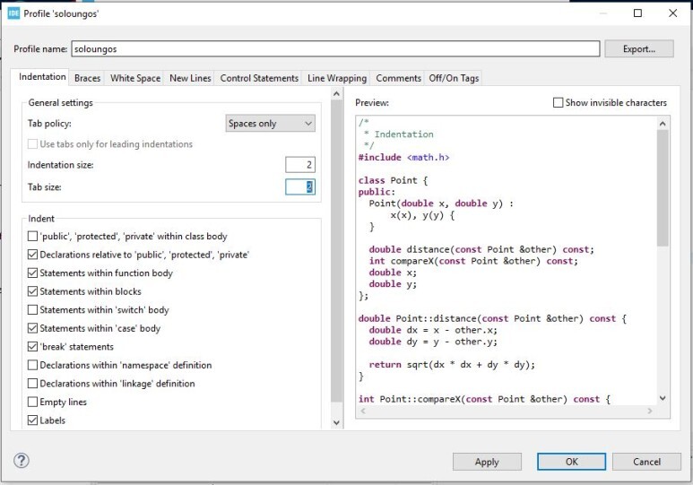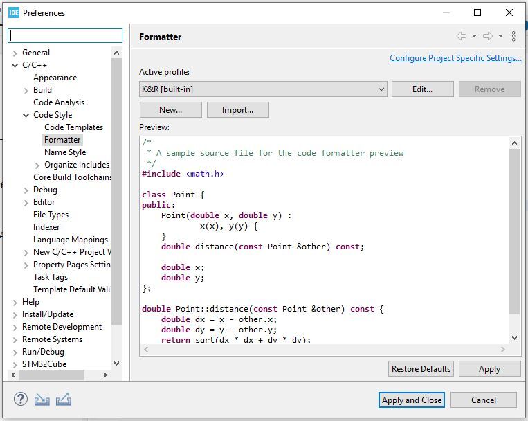CubeIDE > Window > C/C++ > Code Style > Formtter
