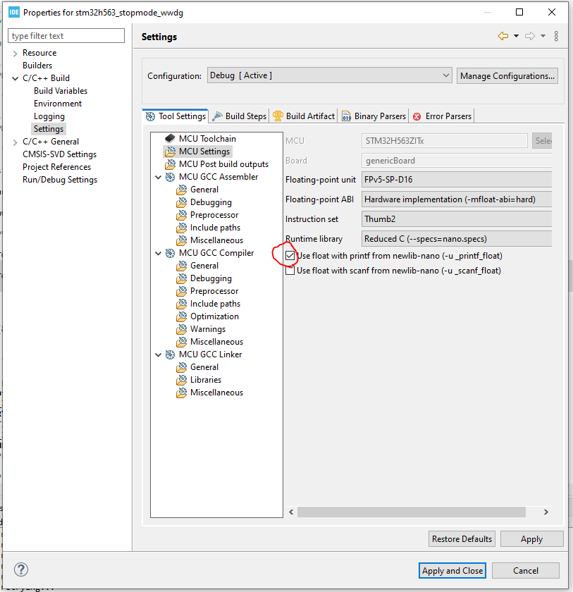 추가로 printf에서 float 형태의 인자를 받기위해서는 아래와 같은 설정을 해주어야 합니다.