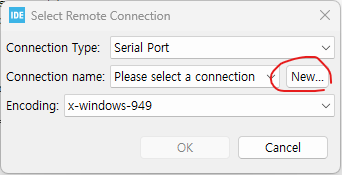 2. Connection Type: Serial Port 를 선택한 후 New를 누릅니다.
