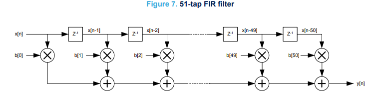 이 예에서는 그림 7과 같이 51탭 FIR 필터를 사용합니다.