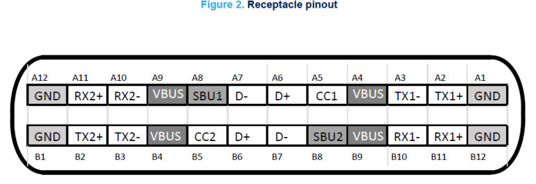Type-C 커넥터에는 2개의 CC 핀(CC1 및 CC2)이 있지만 케이블의 각 끝에 있는 케이블 플러그에는 CC 핀이 하나만 있습니다(케이블을 통해 공통으로 연결됨).
