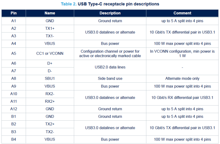 • Source: 포트 전원 역할. CC 핀(명령 제어 핀, Section 4 CC 핀 참조)에서 Rp(Pull-up 저항, 그림 3. Pull up/down CC detection 참조)를 노출하고 VBUS(5V ~ 20V, 최대 5A) 가장 일반적으로 호스트 또는 허브 다운스트림 방향 포트(예: 레거시 Type-A 포트)입니다.