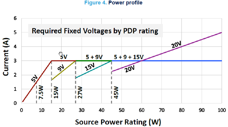 USB Power Delivery 프로토콜은 [16]에 정의되고 다음 그림에 보고된 대로 최대 100W의 전력을 제공하기 위해 고급 전압 및 전류 협상을 가능하게 합니다.