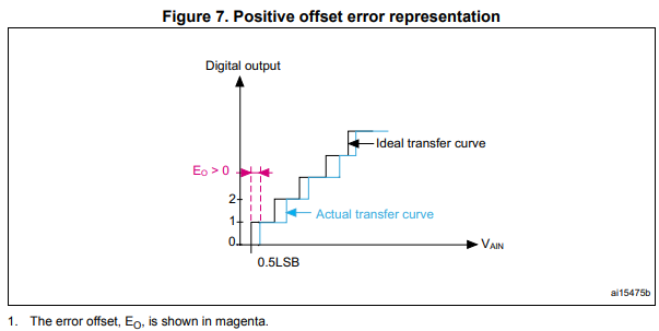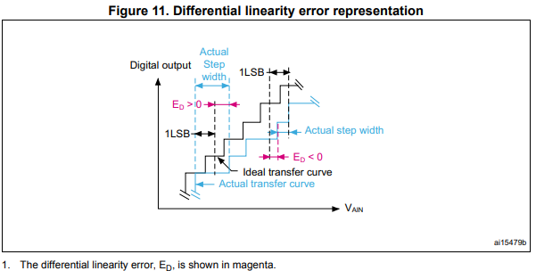 다음은 STM32H7의 Datasheet에 정의 되어 있는 각 Error들인데 Ideal과 Actual의 Step을 한 눈에 볼 수 있어 이해하기 편합니다.