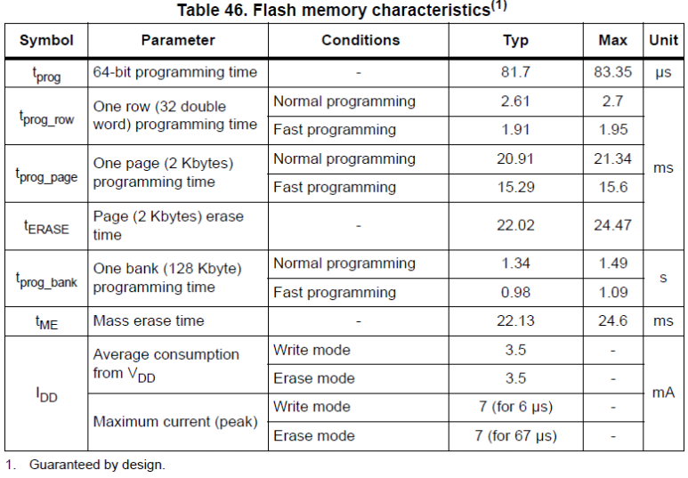 각각의 Erase/Program 소요시간은 데이터시트에 상세히 적혀있으니 참고하시면 됩니다. 아래는 STM32G4의 소요시간입니다.