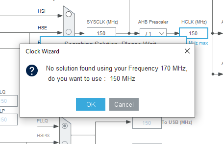 STM32G4를 사용하시는 분들중에 CubeMX에서 System Clock을 Max 170MHz 로 설정이 안되는 황당한 경험을 한 경우가 있을 것 같습니다. 무방비 상태에서 HCLK를 170MHz 설정하면 아래와 같은 메시지를 보게 됩니다.