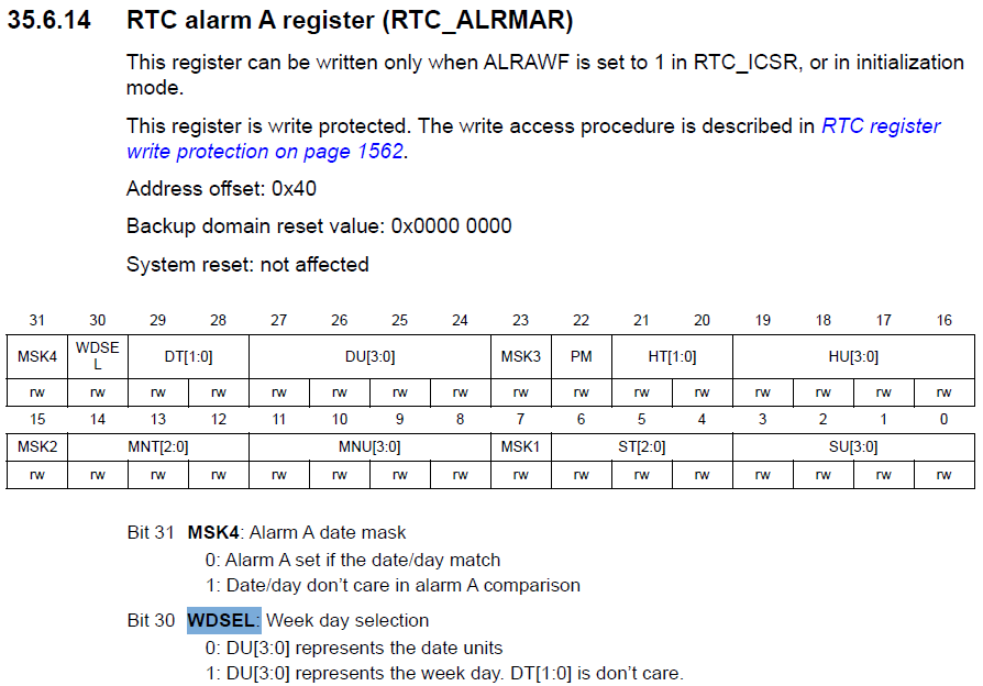 이 부분은데 이는 RTC_ALRMAR의 WDSEL 비트의 설정입니다.