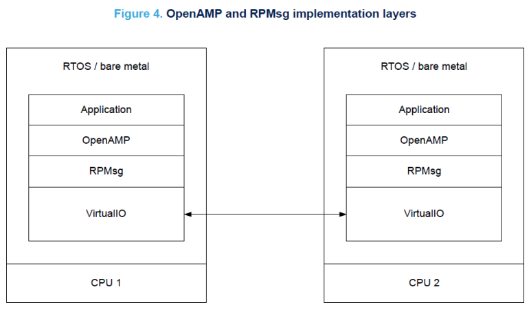 RPMsg는 OpenAMP 프레임워크의 구성요소입니다. 다른 CPU에서 실행되는 응용 프로그램 간의 프로세서 간 통신을 허용합니다. 마스터 프로세서의 RTOS 및 베어메탈 애플리케이션이 원격 CPU 펌웨어와 상호 작용하고 표준 API를 사용하여 통신할 수 있도록 하는 가상 I/O 기반 메시징 라이브러리입니다.