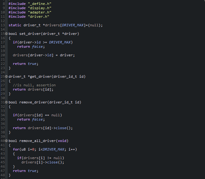 실제 구현은 보시는 것과 같이 간단합니다. driver라는 자료구조에 하나씩 등록하고 요청하면 전달해 주는 역할만 하면 됩니다.